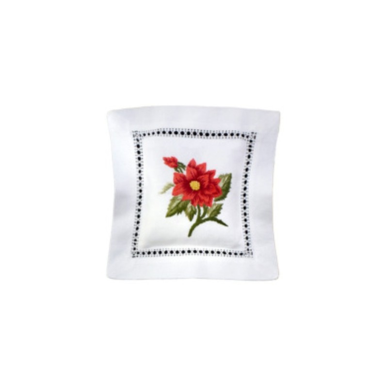 This lavender sachet pillow was embroidered with dahlias and filled with fragrant dried lavender blossoms from Provence, France.