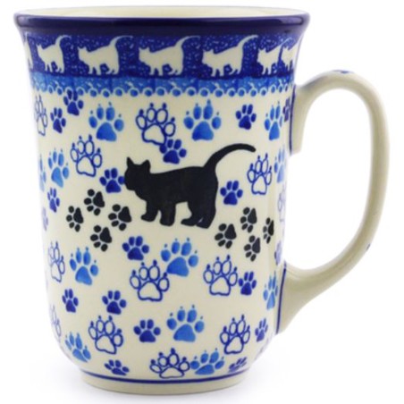 Polish Pottery Bistro Mug - 16 oz - Black Cat